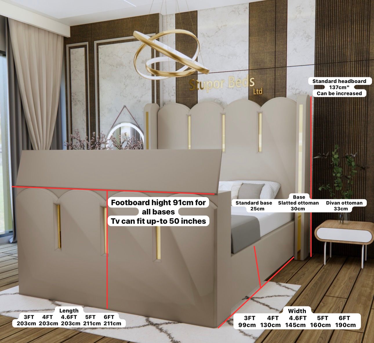 The Rina collection combines Ottoman storage capabilities with luxurious comfort, featuring premium headboards and durable slats for optimal mattress support. Whether you’re furnishing a master suite near the Chiltern Hills or a guest bedroom, our TV beds deliver unmatched functionality without compromising on style.
